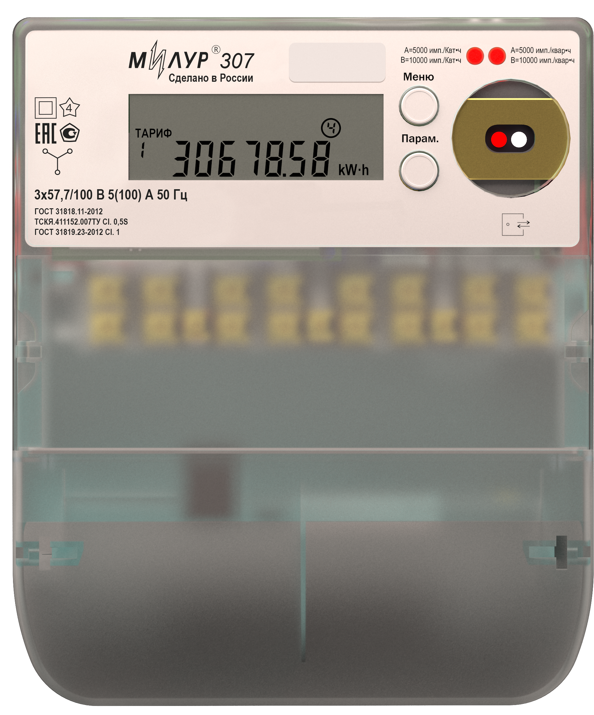 Счётчик электрической энергии статический трёхфазный «Милур 307» с реле управления нагрузкой, предназначен для учета активной и реактивной потребляемой электроэнергии в трёхпроводных и четырёхпроводных сетях переменного тока частотой 50 Гц.